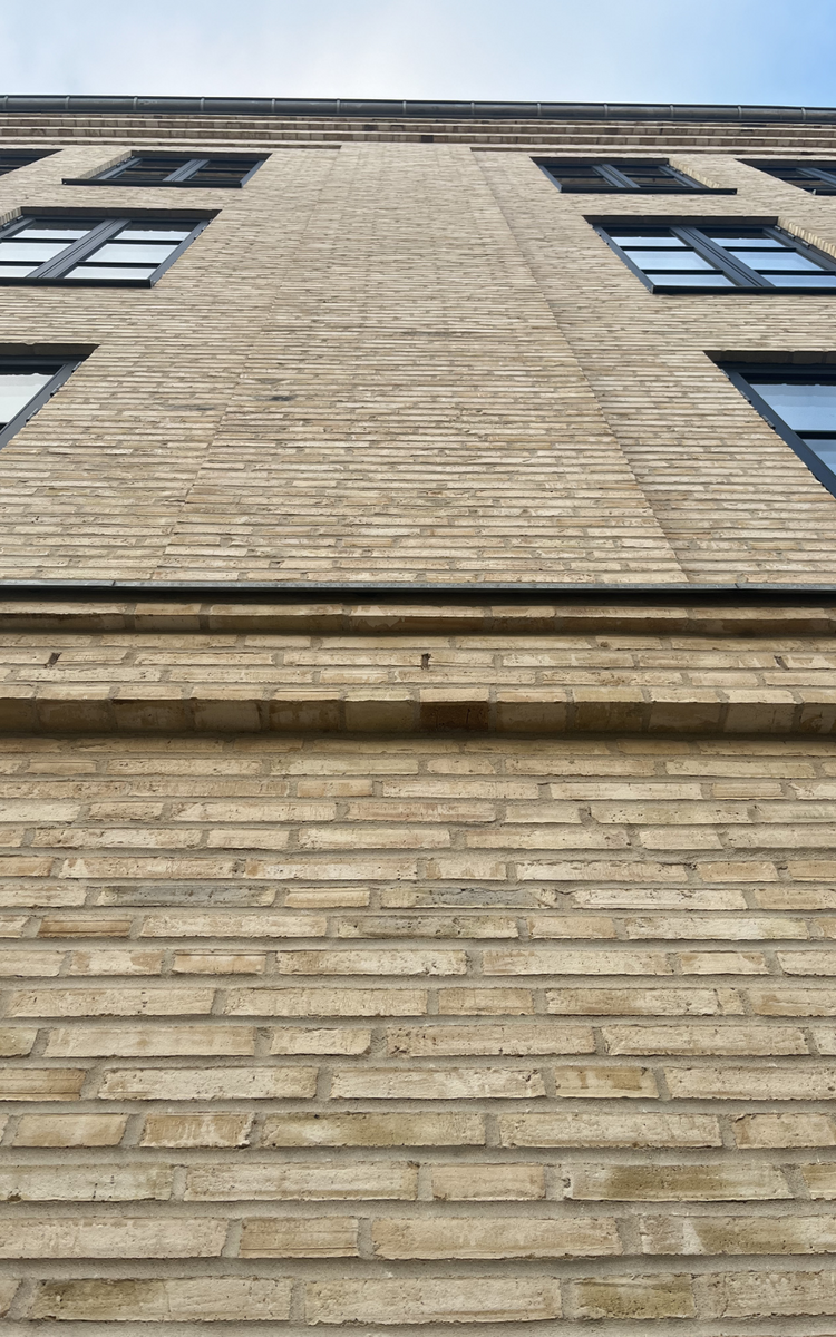 Murværket er udført med stor respekt for de klassiske byggeteknikker fra århundredeskiftet, som kendetegner Sønderborgs bymidte. Resultatet er et byggeri, der naturligt indpasser sig i det historiske miljø og samtidig skaber moderne rammer for både bolig og erhverv.