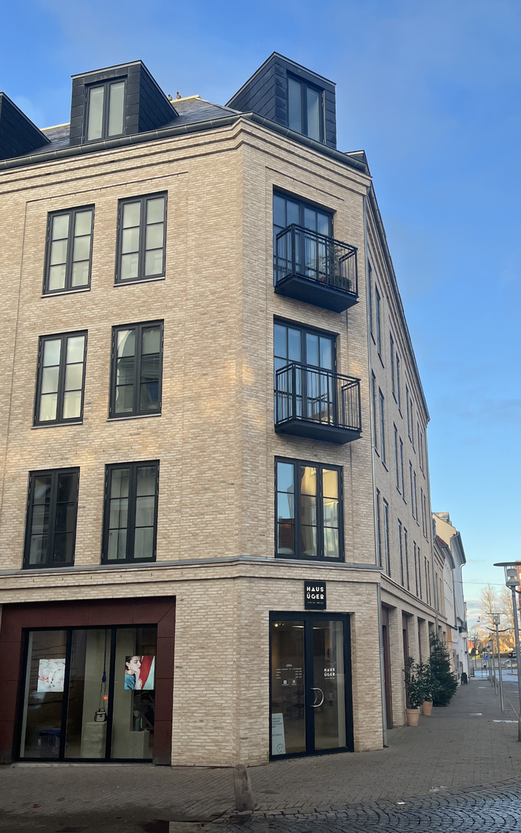 Bo Michelsen A/S har i råhusentreprise opført en markant bolig- og butiksbygning på Perlegade i Sønderborg for Thordsen Udlejning ApS.